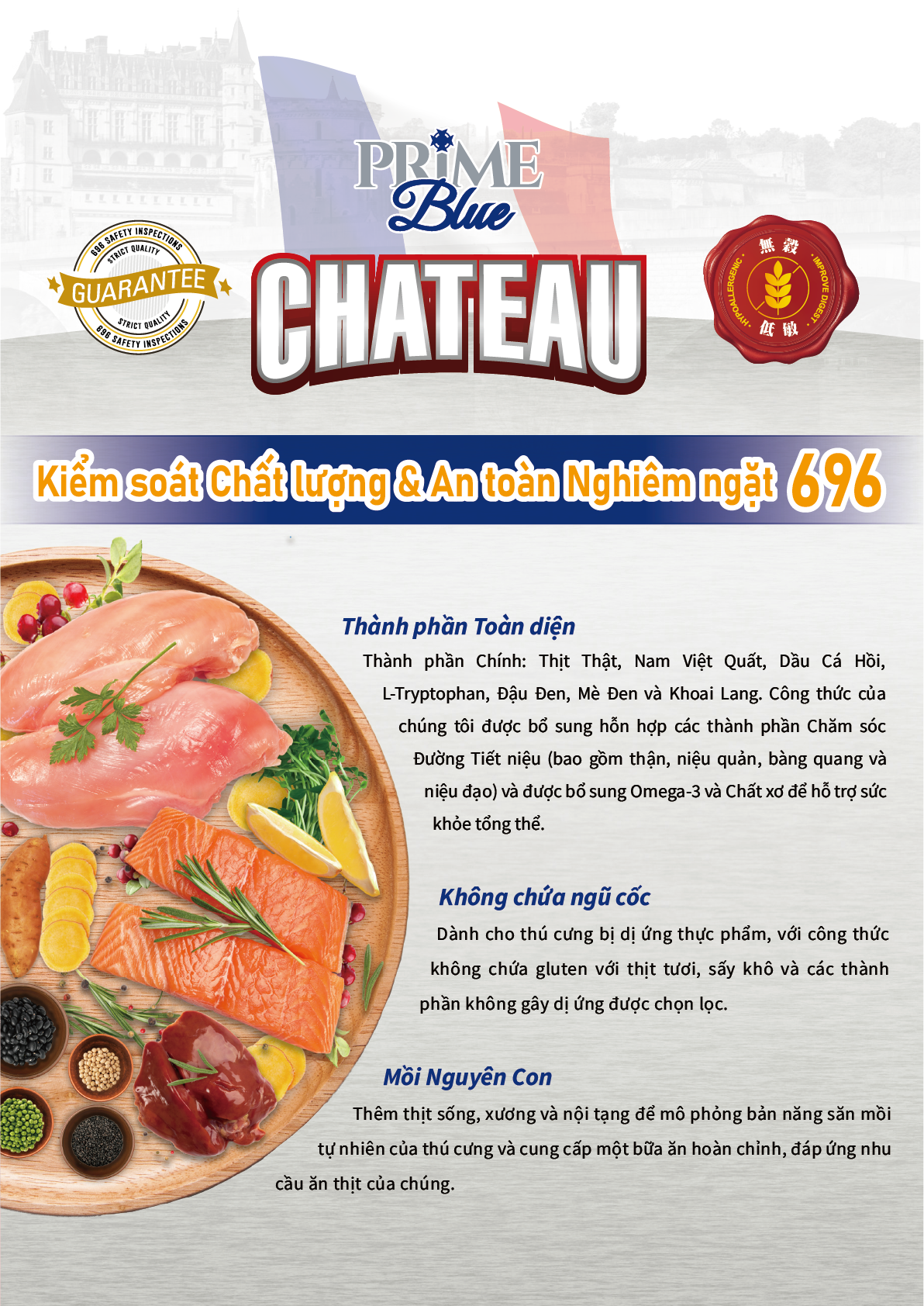 Kiểm soát Chất lượng & An toàn Nghiêm ngặt 696. Dành cho thú cưng bị dị ứng thực phẩm, với công thức không chứa gluten với thịt tươi, sấy khô và các thành phần không gây dị ứng được chọn lọc.